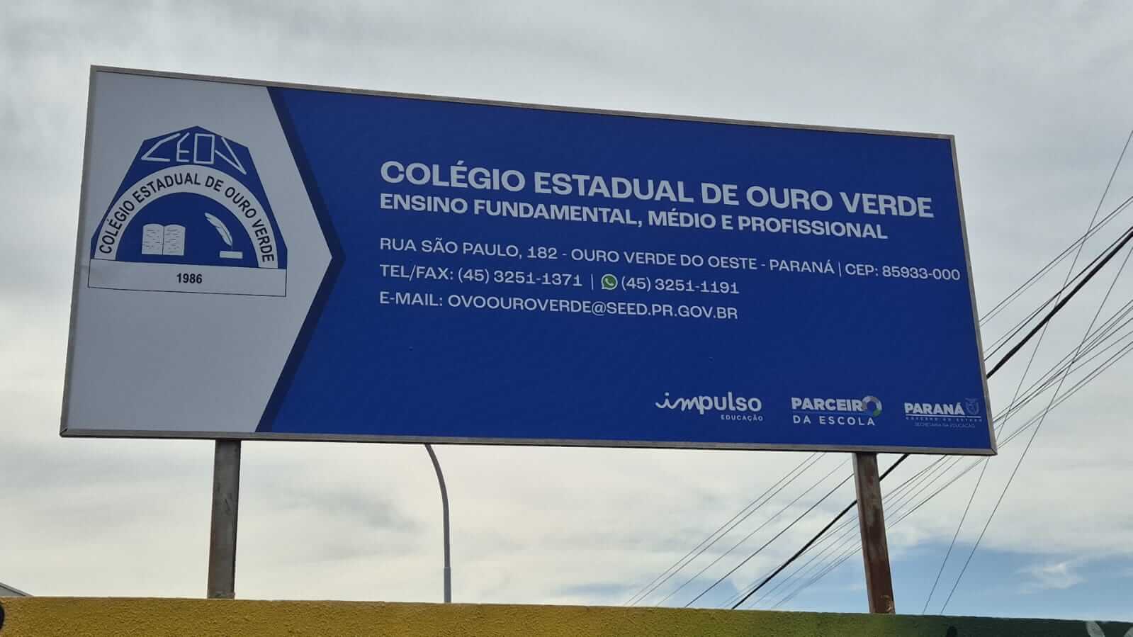 O Colégio Estadual Ouro Verde está de cara nova! Em maio de 2025, a escola recebeu uma moderna placa de fachada, alinhada à identidade visual do Impulso Educação. Essa iniciativa visa não apenas atualizar as informações e contatos da escola, mas também tornar o ambiente mais acolhedor e convidativo para alunos, professores e a comunidade. E tem mais: essa é apenas a primeira de muitas melhorias que o Impulso Educação está implementando em escolas por todo o Paraná. Até o final do ano, outras fachadas serão modernizadas, levando um novo padrão de qualidade visual para a rede estadual. Acreditamos que um ambiente escolar bem cuidado faz toda a diferença no aprendizado. Uma fachada renovada transmite uma mensagem de zelo e atenção, mostrando que a escola se importa com cada detalhe e facilita o acesso à informação. O Colégio Estadual Ouro Verde se torna um espaço ainda mais com um compromisso sólido em fornecer educação de qualidade. O objetivo principal é criar um ambiente mais inspirador e conectado com a comunidade. Queremos que todos se sintam orgulhosos de fazer parte do Colégio Estadual Ouro Verde. Fique por dentro das próximas novidades e acompanhe de perto a transformação que o Impulso Educação